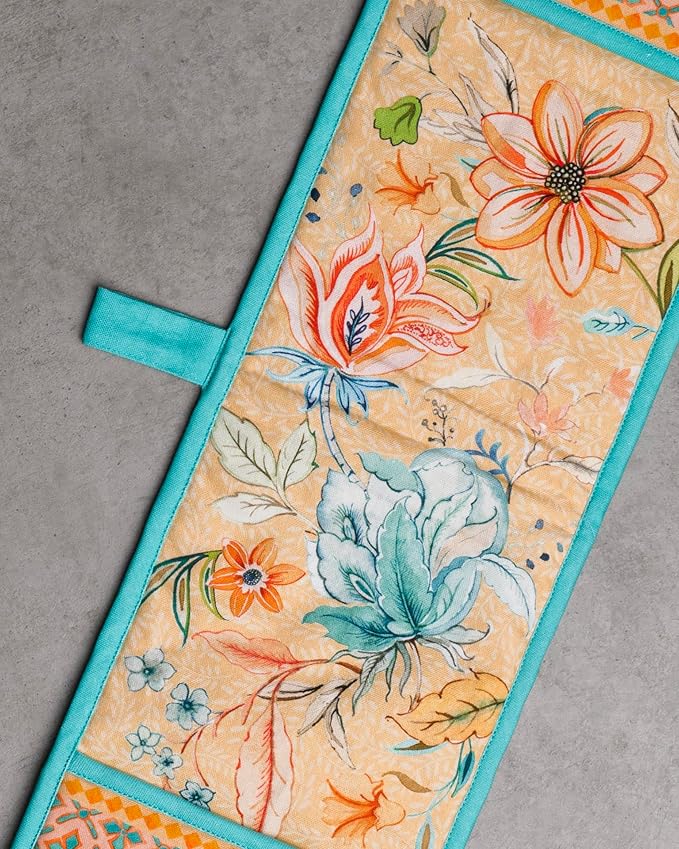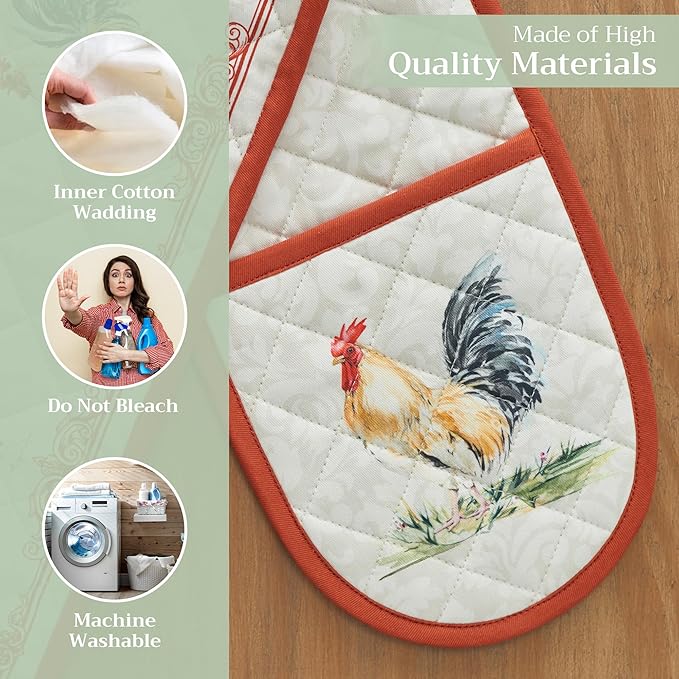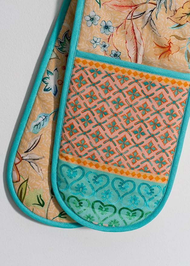 - Package includes: Includes 1 double oven mitt sized 7"x35". Perfect for handling hot cookware safely while adding a touch of European elegance to your kitchen. Designed in Europe and made in India with care