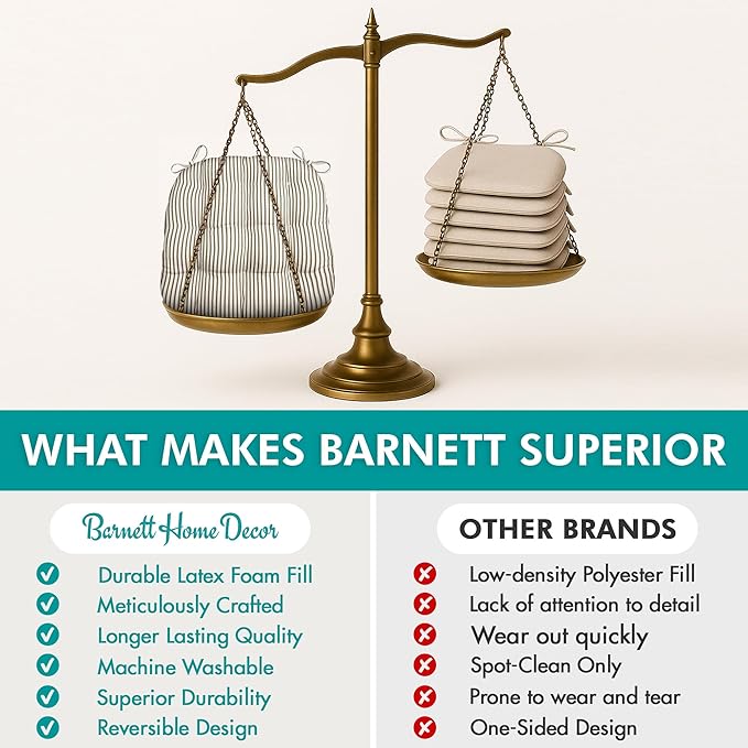 - LATEX FOAM FILL - Dining chair pads feature latex foam fill for premium comfort, lasts longer than other foams and won't go flat (unlike polyester fiber fill)