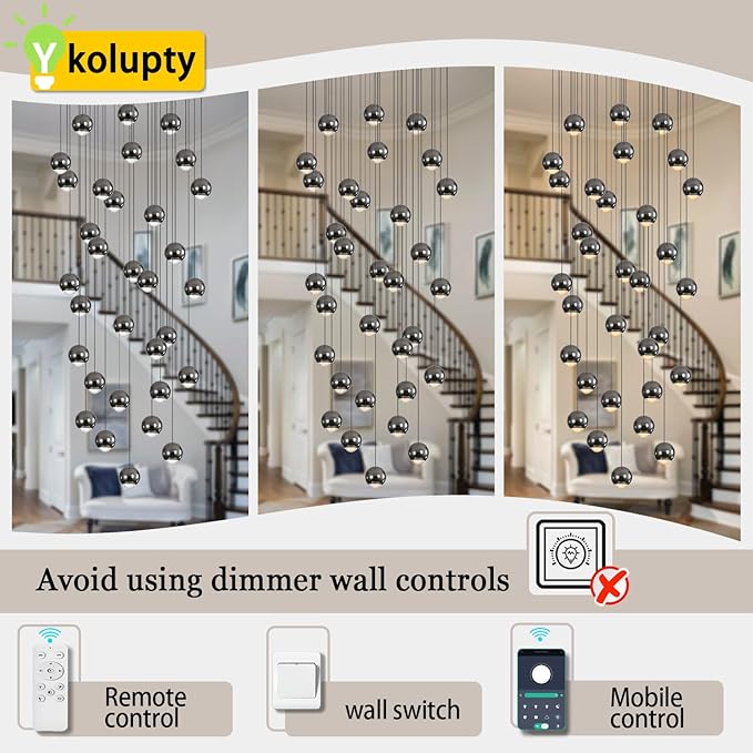 - 【Adjustable Height and Moulding】The length of the stairwell drop chandelier ceiling cable and the position of the crystal ball are completely up to you. The maximum length of the cable is 150inches. The canopy is 27.5 inches (70 cm) in diameter.Sphere size:2.4"x4". AC 85V-256V,25600Lumens. Total 256W LED and Remote control(6000K White/4500K warm white/2700K warm light