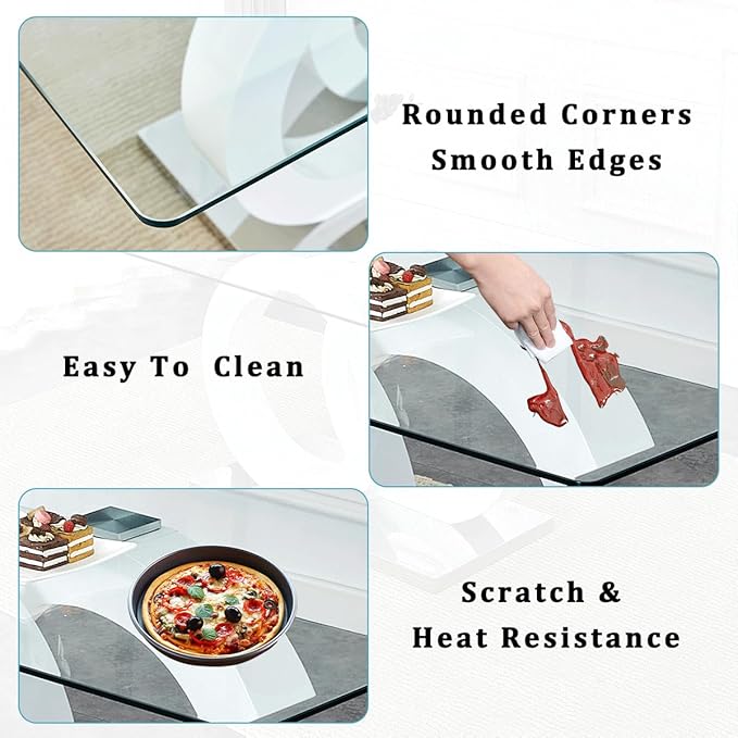 - ใ63'' ๐ฎ๐๐๐๐ ๐ซ๐๐๐๐๐ ๐ป๐๐๐๐ใ This dining table's tabletop is made of tempered glass, which is rigid and durable. The transparent tempered glass tabletop is placed on a stable unique design leg, making the entire kitchen dining table stylish.