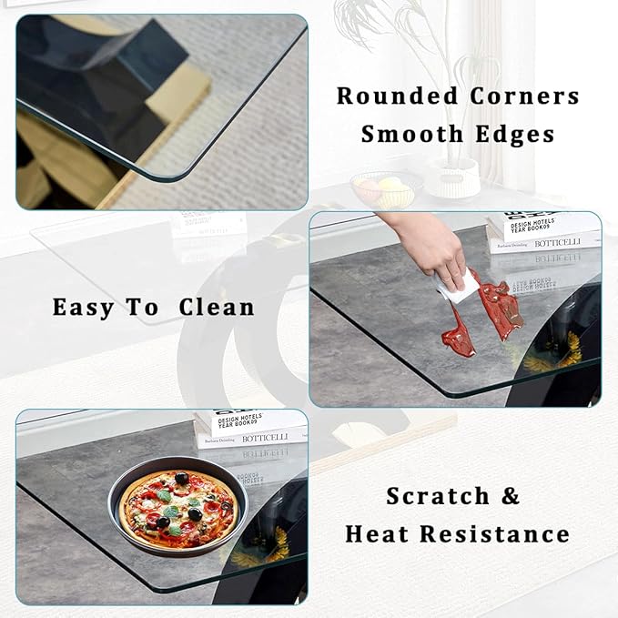 - ใ63'' ๐ฎ๐๐๐๐ ๐ซ๐๐๐๐๐ ๐ป๐๐๐๐ใ This dining table's tabletop is made of tempered glass, which is rigid and durable. The transparent tempered glass tabletop is placed on a stable unique design leg, making the entire kitchen dining table stylish and functional.