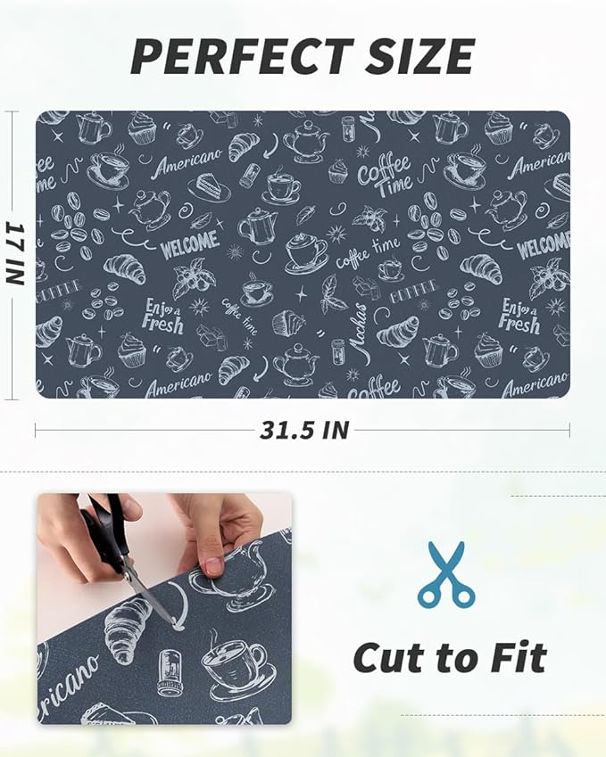 AMOAMI Coffee Mat Hide Stain Rubber Backed Absorbent Dish Drying Mat for Kitchen Counter - Fits Under Coffee Maker & Machine - Dust Blue (17X31.5)