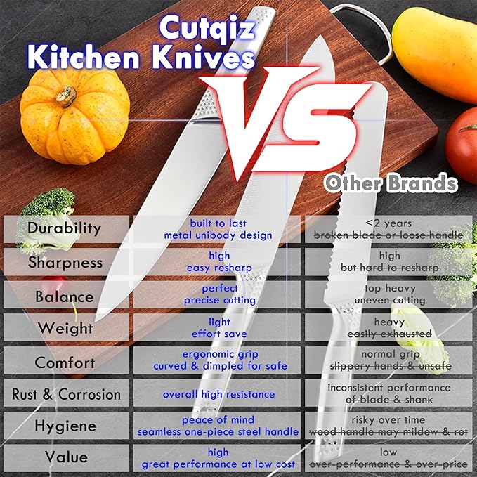 - Multipurpose knife to chop veggies, slice meats, dice fruits, cut bread, etc.