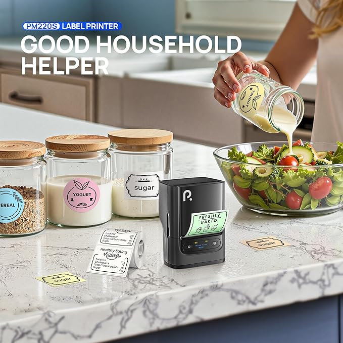 - 【Widely Use】PM220S thermal printer compatible with Smartphone & PC. Easily connect to your smartphone in just 5 seconds via 4.0 for fast and convenient printing. you can easily print any label you need like price labels, clothing labels, address labels, folder labels, date labels and so onIdeal label printer for a variety of festival labels need, including Christmas, Halloween, Thanksgiving, Father's Day, Mother's Day