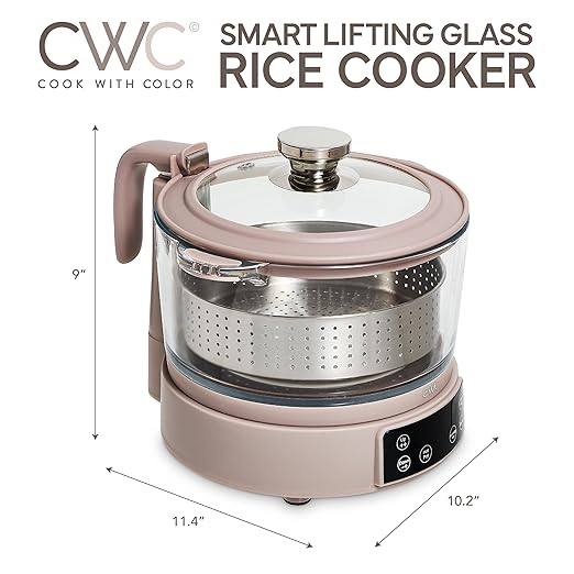 COOK WITH COLOR 3L Glass Low Carb Rice Cooker - Makes 6 Cups Cooked Low Sugar Rice with Auto Lift Filter Basket, Hotpot & Steamer for Rice, Grains and Oats, Digital Panel with Keep Warm, Greige
