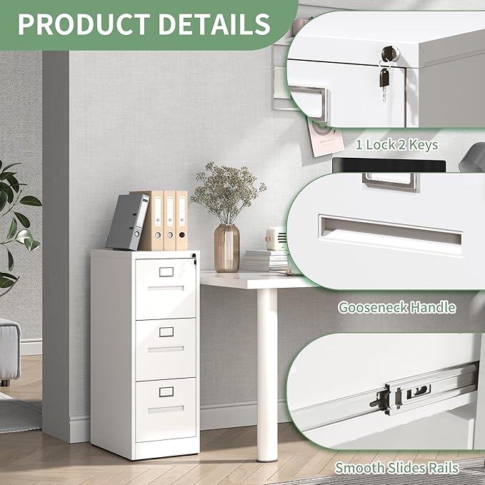 - 【Multifunctional use】This white filing cabinet suits for home office and personal use, the vertical file cabinet does not take up too much space. You can use the file cabinet organizer in the office or your home and also use the lockable file cabinet as a personal belongings storage cabinet to store your letters and documents, etc.