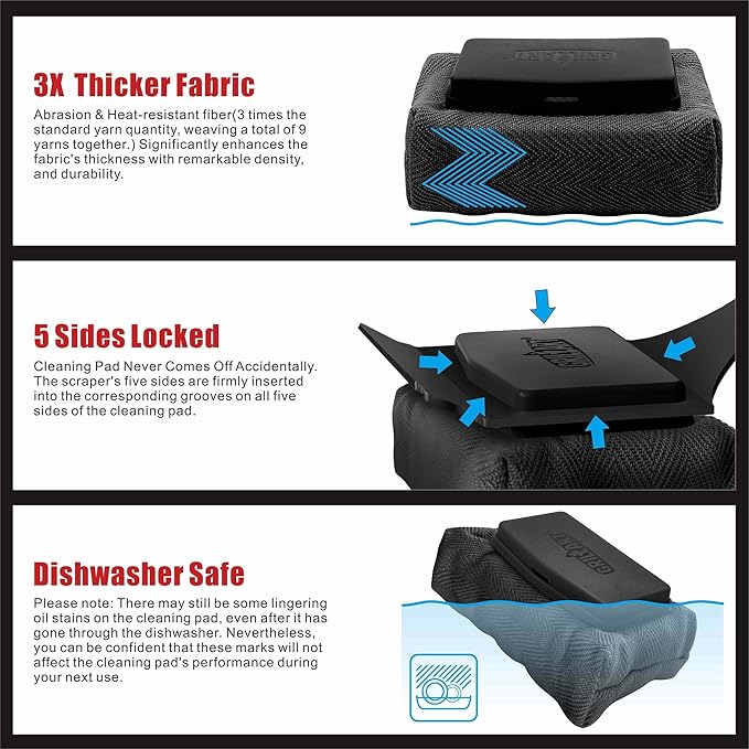 - Seamless Fitting Grill Bar - Wave-shaped groove fire-retardant foam design is uniquely crafted to extend beyond the top of the grill bars. It seamlessly fits any grill bar, allowing for deep and thorough cleaning by encircling it, effectively removing hidden grime from all three sides (360-degree cleaning).