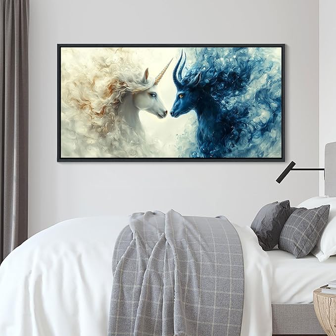 HKDGOKA Large Framed Wall Art, Blue and White Gradient Abstract Animals Paintings Light Dark Style Opposition Artwork Canvas Prints Pictures for Bedroom Living Room Kitchen Home Decor 24x48 IN