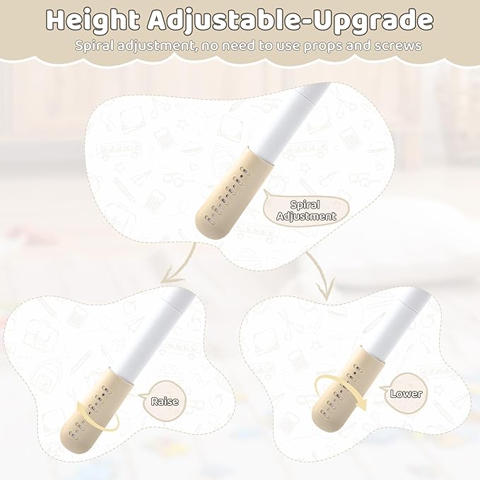 - Height Adjustable-No Tools Required for Table: Doreroom's toddler table and chair set has been upgraded in height adjustment mode. The table use a spiral adjustment method and can be adjusted to any height within the range of 17.7-21.65 inches without the need for tools. The chair can have three adjustment levels within the range of 20.9-22.5 inches, but screws are required.