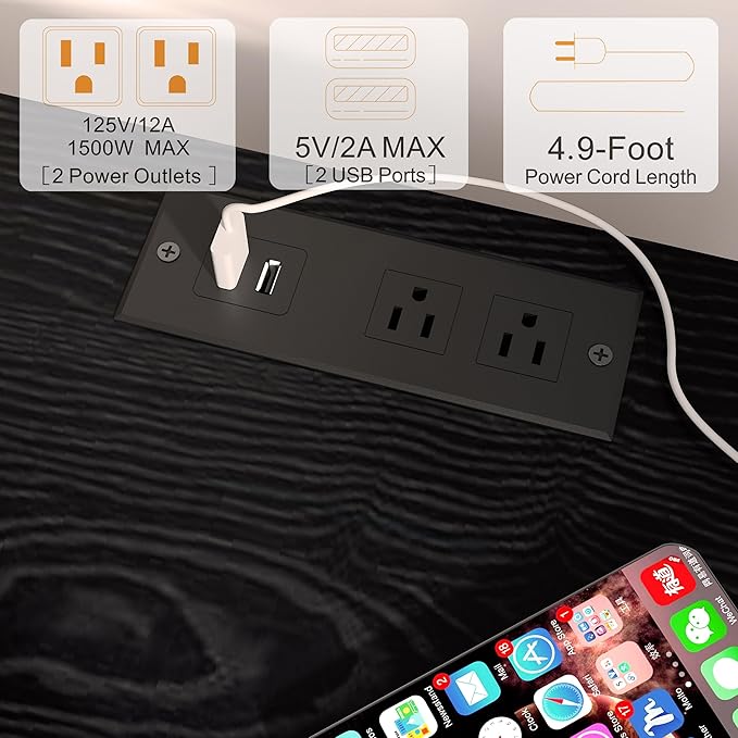 - Side Table with Outlets and USB Ports: The charging station includes 2 3-prong AC outlets and 2 USB ports, meeting your needs to charge your phone, desk lamp and laptop freely. 4.9 feet power cord helps you move the tea table easily