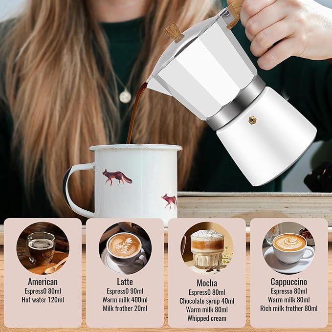 - Exquisite Taste Experience: Elevate your coffee moments with our Moka pot. It's not just about the incredible taste of your cup of coffee; it's about the whole experience. Unleash your creativity and prepare personalized, smooth, and rich brews for your loved ones, evoking elegance and style, regardless of the occasion or setting