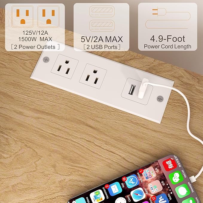 - Side Table with Outlets and USB Ports: The charging station includes 2 3-prong AC outlets and 2 USB ports, meeting your needs to charge your phone, desk lamp and laptop freely. 4.9 feet power cord helps you move the tea table easily