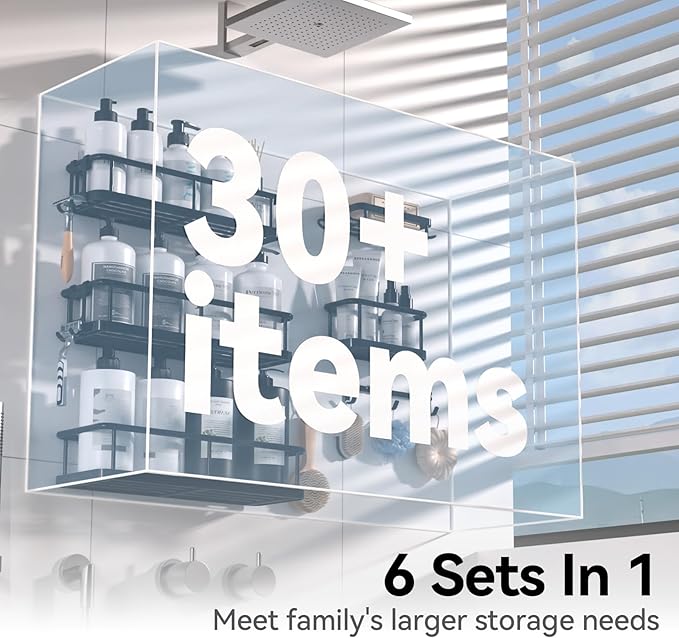 - Shower Storage Solution: Enhance your bathroom space with YASONIC versatile 6-piece organizer set: Large caddy X3, mini caddy X1, soap holder X1, Adhesive tape X6 and a row of hooks: It allows for flexible combinations to accommodate all your shower essentials. Meets diverse storage needs effortlessly. Yasonic's shower caddy transform limited bathroom space into an organized haven, extending storage possibilities and enhancing your daily routine with ease
