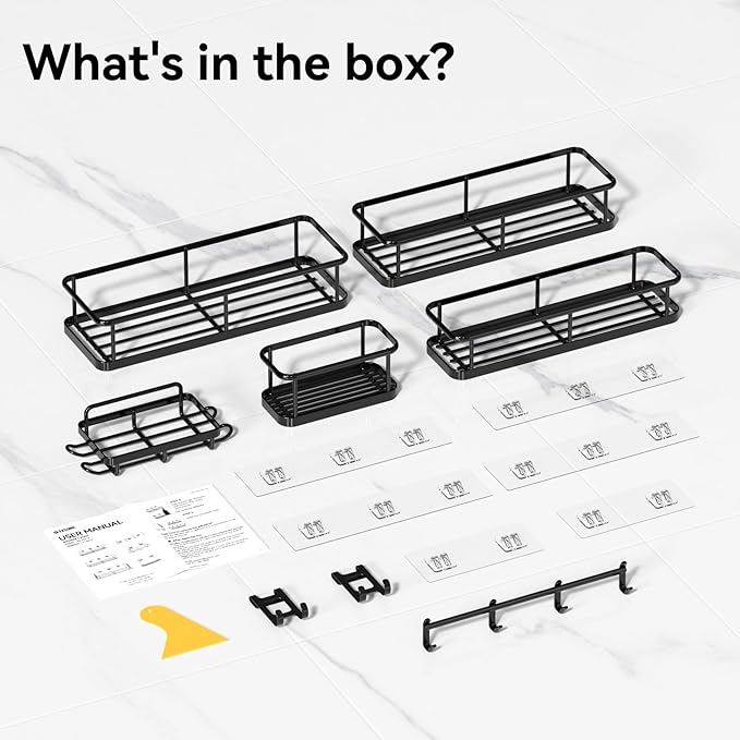 - Effortless Installation: Yasonic shower caddy set features a robust adhesive that enables quick installation on smooth surfaces such as tiles/marble/glass/metal without drilling or damage. Enjoy the ease of setup and the assurance of a secure hold, making organization simple and efficient. Enhance your living space with our user-friendly solution designed for modern living