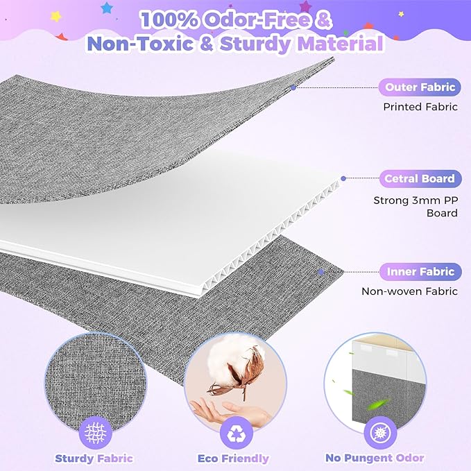 - Durable & Sturdy Design: Kids toy box is made from 100% odorless,non-toxic premium linen fabric and thickened PP cardboard, which is durable, breathable and non-irritation. 3mm high-quality strong PP board can withstand a weight of 30-50KG, which is enough to prevent deformation of the four sides.