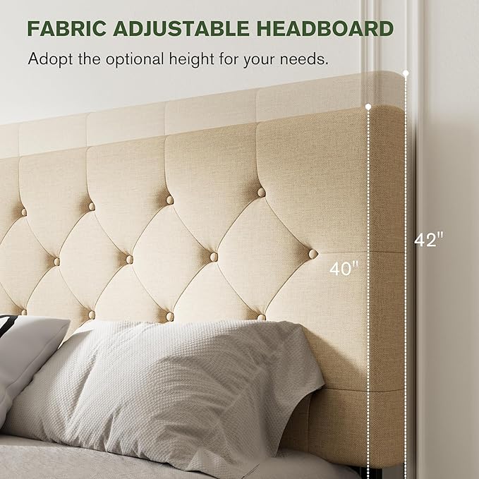 - Special Feature : 4 Storage Drawers, Adjustable Headboard, Classic Fabric, Diamond Tufted, Easy Assembly, No Box Spring Needed 4 Storage Drawers, Adjustable Headboard, Classic Fabric, Diamond Tufted, Easy Assembly, No Box Spring Needed