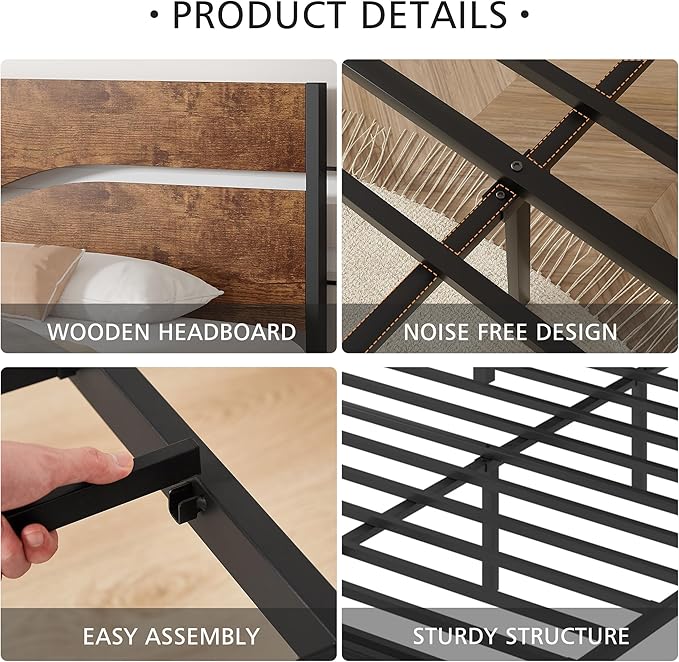 - [Unique Design]: The Retro Black wood headboard and black metal bed frame create a mild industrial look and rustic style, adding a unique touch to your room. The collision of fashion and tradition will give you a different feel. Please follow the instructions for assembly.