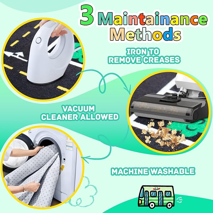 - [Machine Washable Kids Play Rug]This car rug for kids toy cars measures 5 x 7 feet/60*79 inches.0.4'' thick.Our mat is easy to clean by vacuum or machine.Perfect bedroom rug, living room rug, and playroom rug