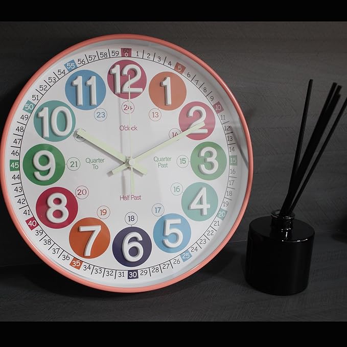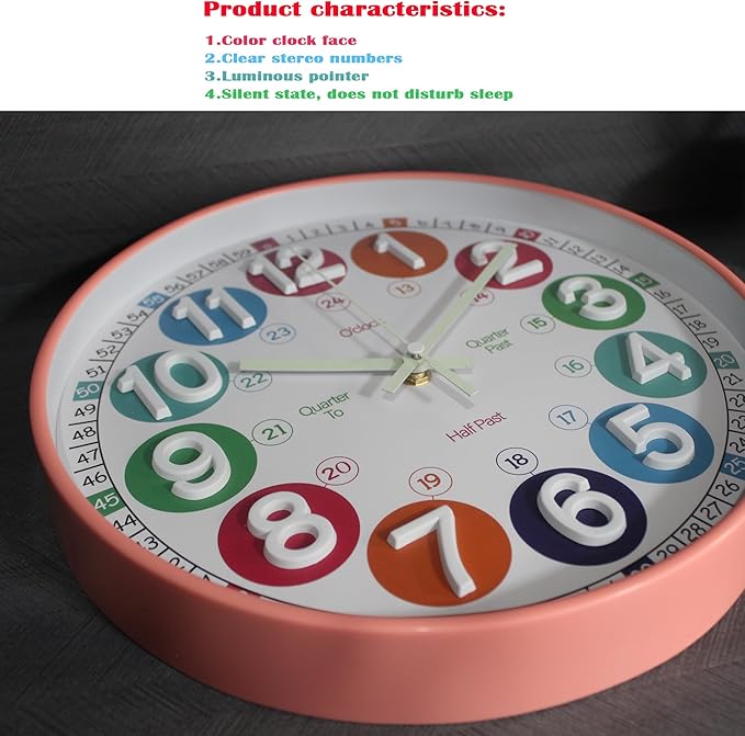 - Colorful Clock Face And 3D Numbers:The rainbow color numbers clearly marked inside,a learning clock that teaches through a 1-60 numerical scale and readable wall clock moments. Perfectly combines 12/24 hour format for effortless mastery.3D digital clock face, more suitable for hanging on the wall, see more clearly.Different from other clock faces.