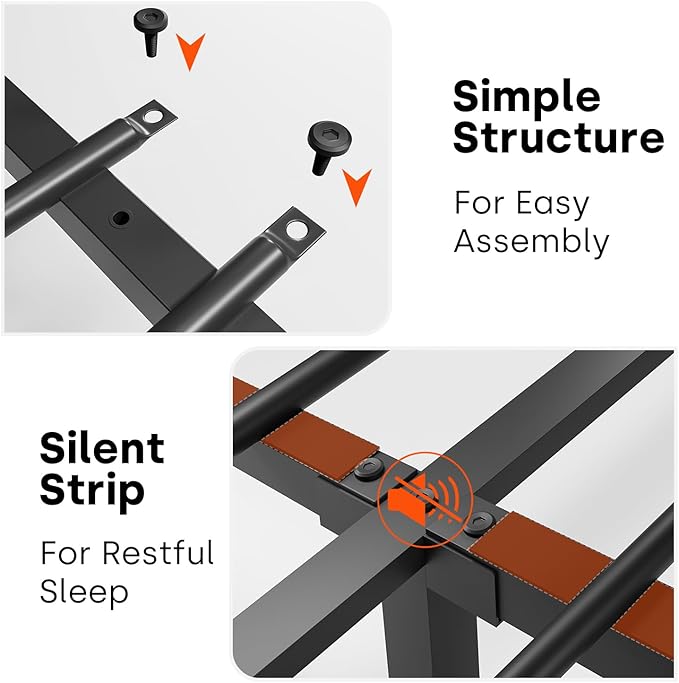 • Goodbye to Squeaks: Silent foam tape and embedded design of queen size bed frame to create a quiet comfortable bedroom environment