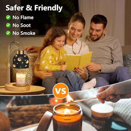 - ADJUSTABLE HEIGHT & FIT ALL CANDLE SIZES:seenlast candle warmer lamp has adjustable height function,which is compatible with multiple jar candles or wax,the height from base to shade adjusts from 1.9 to 5.7 inches,it can hold jar candles of various sizes.The wooden base is made of high-quality material with non-slip pads under the base to ensure its stability.