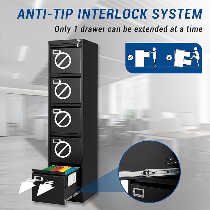 - EASY TO OPEN AND CLOSE - Compared with other file cabinets of the same type, we have installed a pair of metal slide rails for each drawer, even if the whole drawer is full of heavy files, you can still open and close easily with the help of metal slide rails drawer.