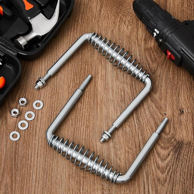 Dunzy 2 Pieces 6" Steel Spring Handle 5" Wide Overall with 1/2" Steel Rod for BBQ Pits Trailers Custom Metal Projects Wood Stove Handles Replacement Grill Barbecue Tool Sets(Silver)