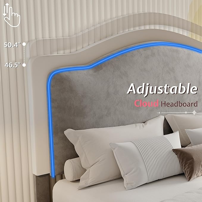 - High & Thick Headboard Haven: Lean into a 3.5" thick velvet headboard that adjusts up to 50.4". Taller than most, it offers cozy back support—ideal for reading or relaxing in your soft, quiet retreat.