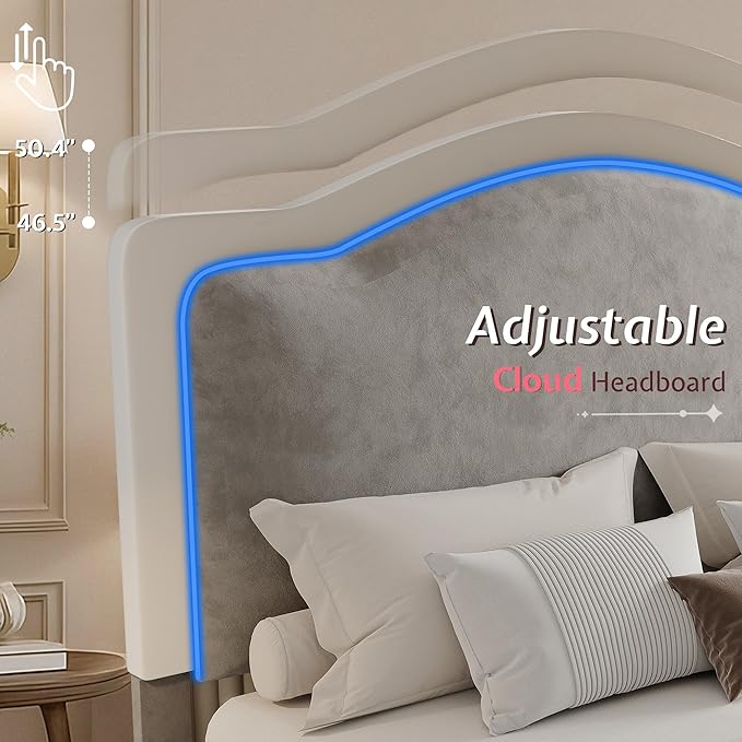 - Modern Comfort for Every Bedroom: This queen upholstered bed frame features a 3.5" thick, adjustable velvet headboard up to 50.4" tall. Perfect for modern bedrooms, it provides cozy back support—ideal for reading, relaxing, or family time.