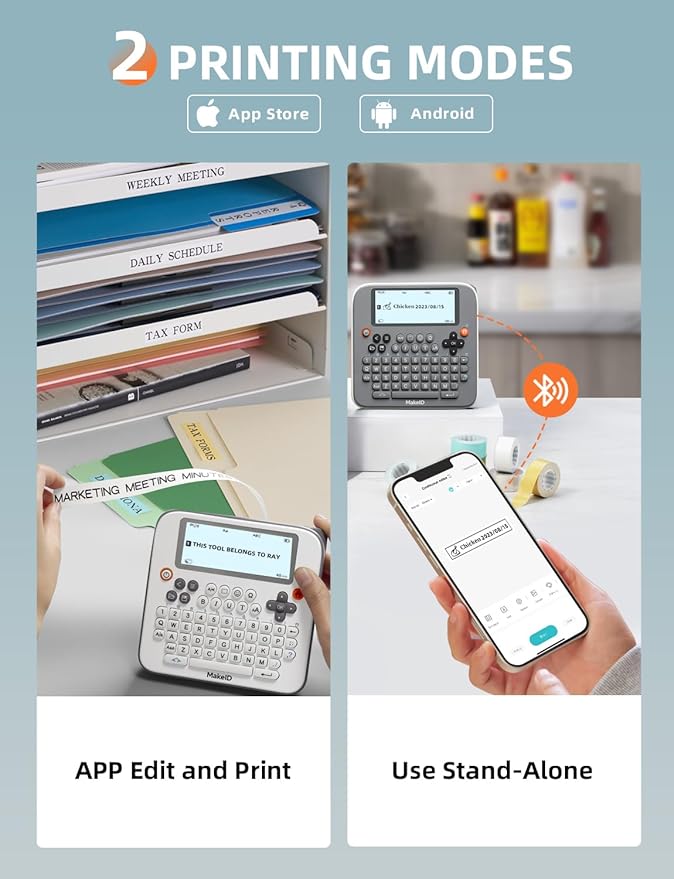 - APP DIY Custom Labels: connect via Bluetooth to the app and access a vast library of templates, including 47 fonts, 16 borders, 600+ stickers & symbols, 54+ templates, and barcode/QR code printing