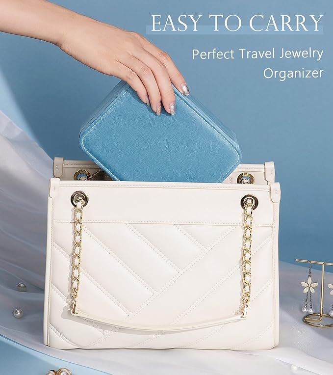 Homde Jewelry Box Small for Women: Ring Earring Organizer Storage for Dresser - Necklace Bracelets Holder with Multi Compartments(Light Blue)