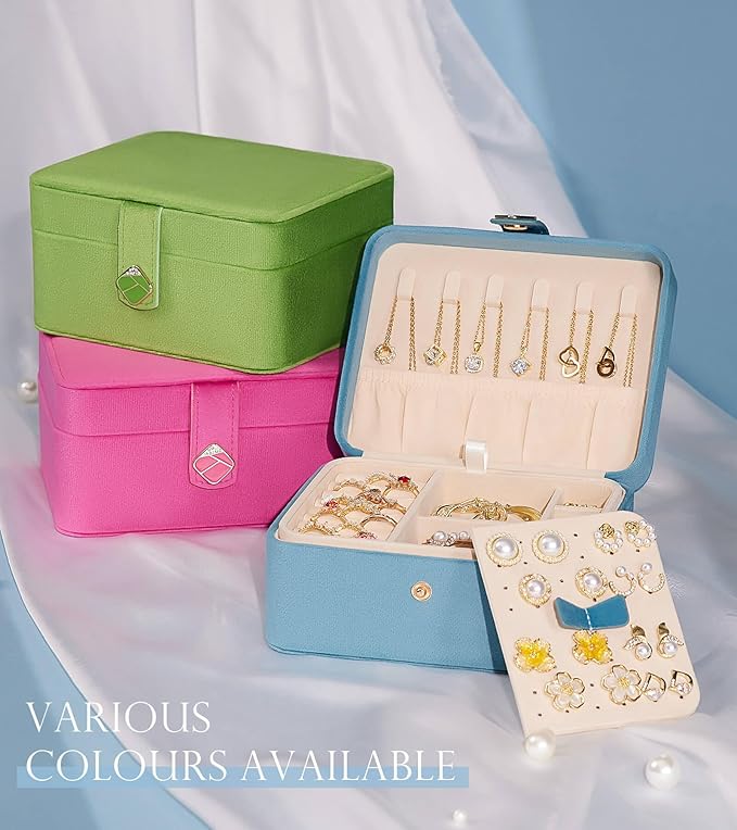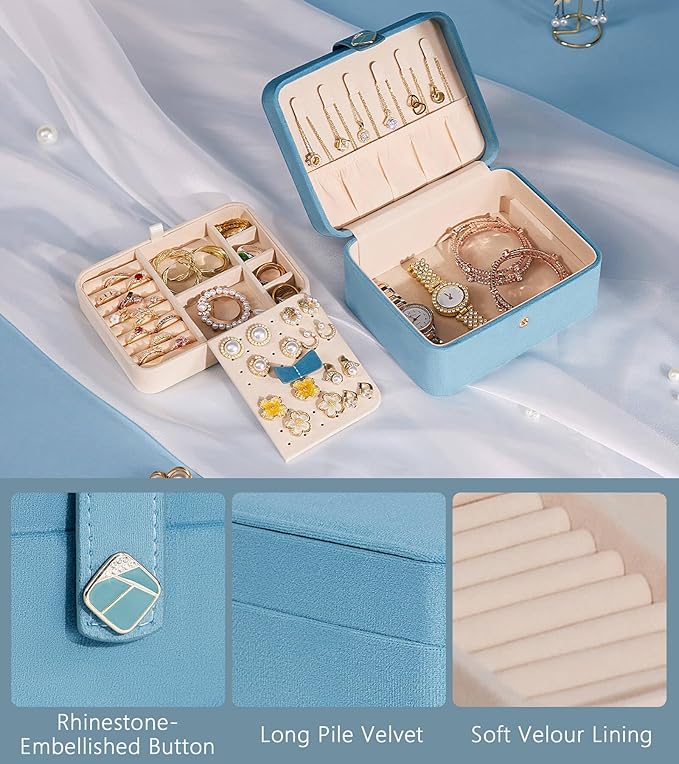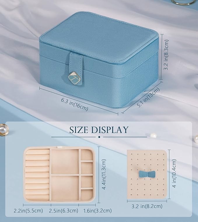 - Small yet Stylish:This small 2-layer jewelry box is an elegant and space-saving solution for your dressing table. Its compact 6.3x5.2x3.3 inch size fits easily into drawers or on a vanity, saving space while keeping your bedroom decor neater