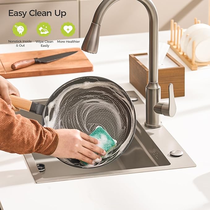 - LIGHTWEIGHT NON TOXIC CAST IRON SKILLETSN: These nonstick ceramic frying pan are free of PFAS and PFOA, ensuring healthier cooking without harmful chemicals. The thick bottom and thin wall design make them lightweight yet durable. The lightweight design is a game changer—it's so much easier to handle compared to traditional cast iron pans.