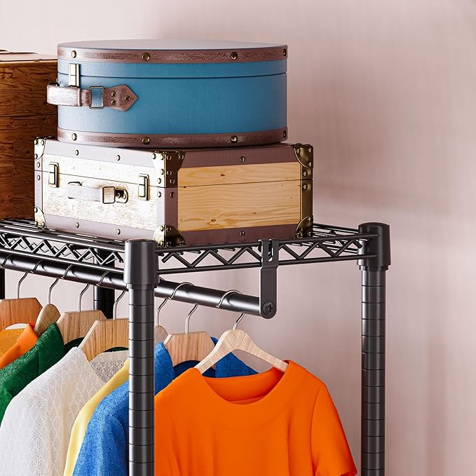 IZEUK Heavy Duty Garment Rack, Closet Organizer and Clothes Rack for Hanging Clothes with 3 Hang Rods, Freestanding Adjustable Metal Wardrobe, 15.7" D x 41.5" W x 76.5" H, Max Load 750LBS, Black