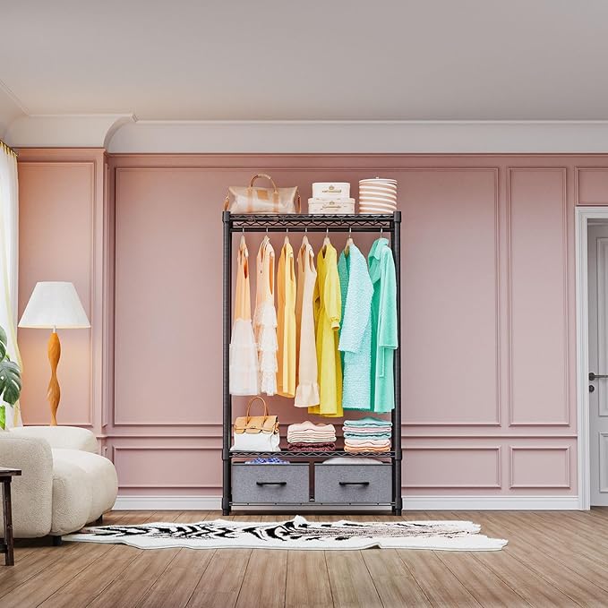 - Premium Quality Carbon Steel: This clothing rack with drawers is crafted from high-quality carbon steel with a rust-resistant finish. The 25.4 mm thick steel tubing provides excellent durability and stability, making it ideal for long-term use in both home and commercial settings.