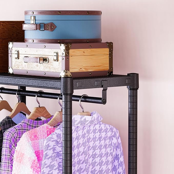 IZEUK Heavy Duty Garment Rack, Closet Organizer and Clothes Rack for Hanging Clothes with 1 Hang Rods, Freestanding Adjustable Metal Wardrobe, 15.4" D x 35" W x 71.5" H, Max Load 1000LBS, Black