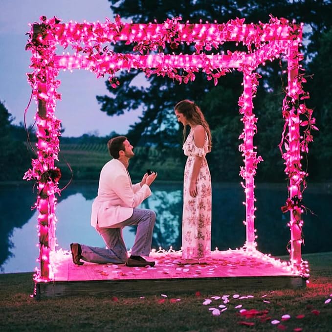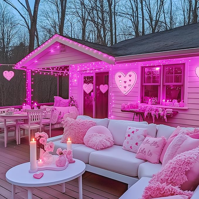 - 【Remote Control Pink String Lights for Outside】Our upgraded string lights come with a wireless remote control that offers 8 lighting modes, dimming options including 4 adjustable brightness levels, and timer functionality.