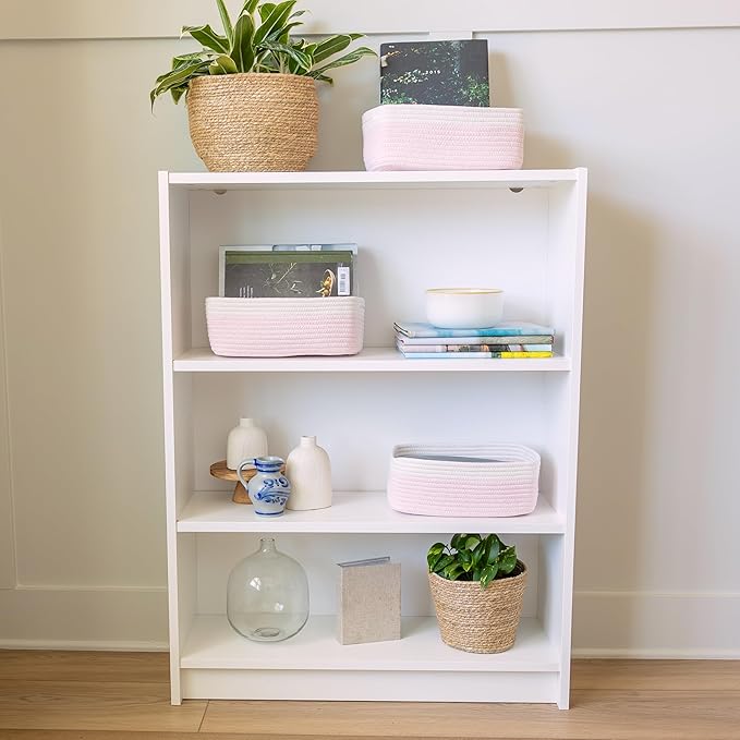 NaturalCozy 11.8"x8"x4.5” Rectangle Storage Baskets for Shelves 3 Pack | Cotton Rope Woven Small Baskets for Organizing | Small Storage Bins for Nursery, Bathroom, Closet, Shelf, Decorative, Gift