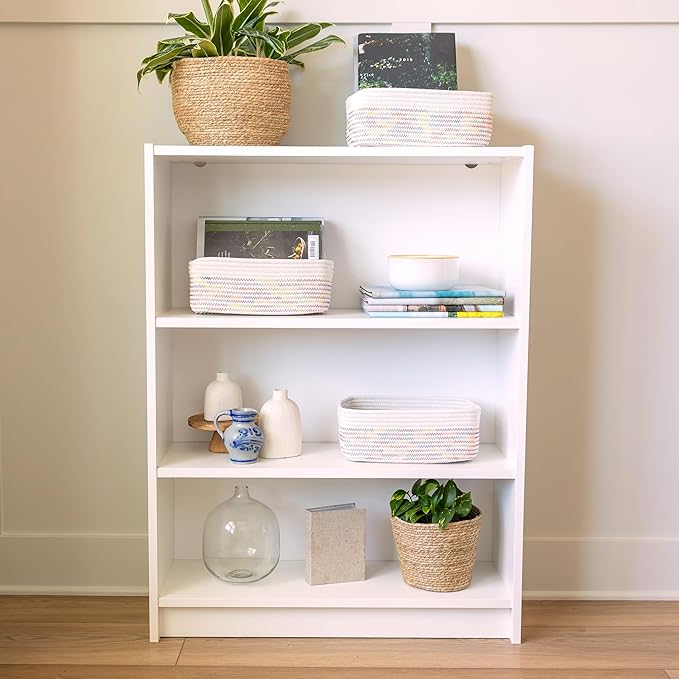 NaturalCozy 11.8"x8"x4.5” Rectangle Storage Baskets for Shelves 3 Pack | Cotton Rope Woven Small Baskets for Organizing | Small Storage Bins for Nursery, Bathroom, Closet, Shelf, Decorative, Gift