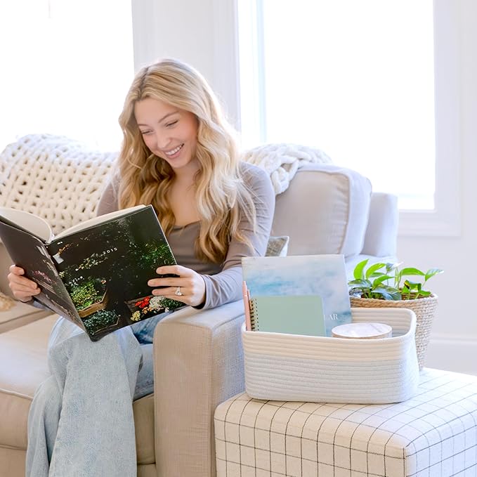- Safe, Natural Cotton Organizer Bins: Crafted from the highest quality material in the market, our storage bins are oh-so-sturdy (and cute) and ready to take on little humans. They’re 100% safe, so you can rest easy if teething toddlers take a nibble. Reinforced Hidden Handles: Now you see ‘em, now you don’t! With completely hidden handles that blend seamlessly into the rope basket, you’ll be the Houdini of home organizing. They’re even double-stitched and reinforced for extra heavy loads!