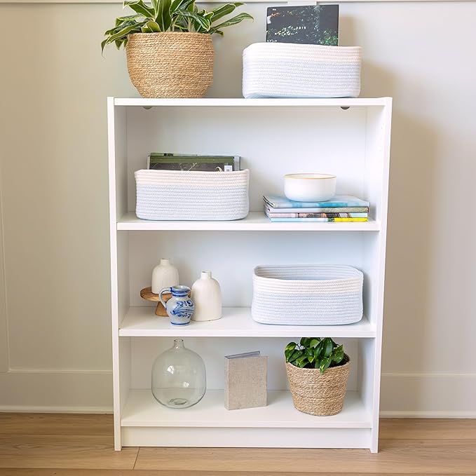 NaturalCozy 13.5”x8.5”x5.5” Rectangle Storage Baskets for Shelves 3 Pack | Cotton Rope Woven Small Baskets for Organizing | Small Storage Bins for Nursery, Bathroom, Closet, Shelf, Decorative