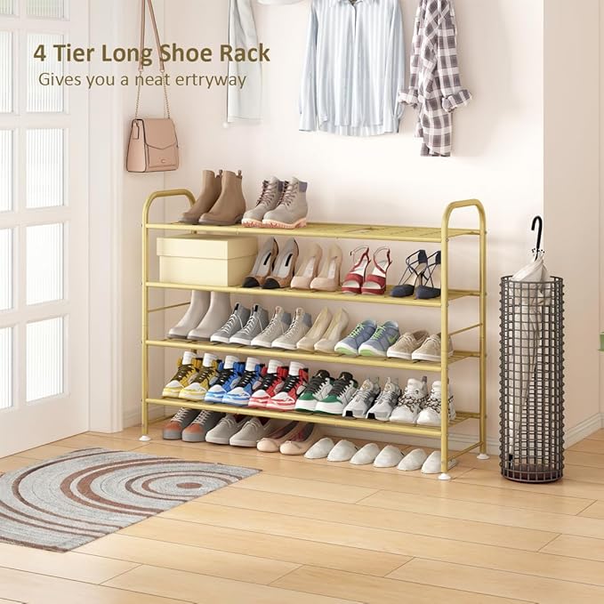 LINZINAR Shoe Rack 4 Tier Storage Organizer for Closet Entryway Metal Gold