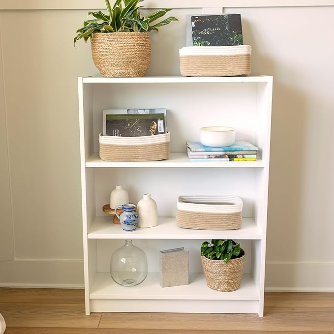 NaturalCozy 11.8"x8"x4.5” Storage Baskets for Shelves 3 Pack | Cotton Rope Woven Small Baskets for Organizing | Small Storage Bins for Nursery, Bathroom, Closet, Cube Shelf, Decorative, Gift Basket