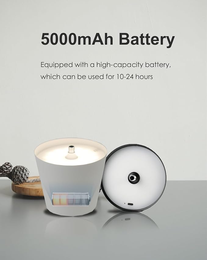 - Rapid Charge & 24-Hr Runtime: Powering this cordless table lamp is a robust 5000mAh lithium battery that achieves full charge in just 60 minutes via modern USB-C technology. Enjoy marathon runtime options – 12 hours of continuous maximum brightness for all-night gatherings or 24 hours of subtle 5% glow for atmospheric bedroom lighting. The scratch-resistant aluminum body (1.6lbs) withstands outdoor elements while maintaining sleek aesthetics, equally at home in modern lofts, rustic cabins, or beachfront bars.