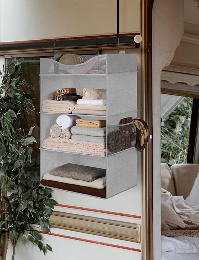 - Versatile Storage: Hanging closet shelf for versatile storage of sweaters, knitwear, handbags, scarves, shirts, pants, hats, shoes, dorm essentials, and more in the closets, trailers, college dorms, or RVs.