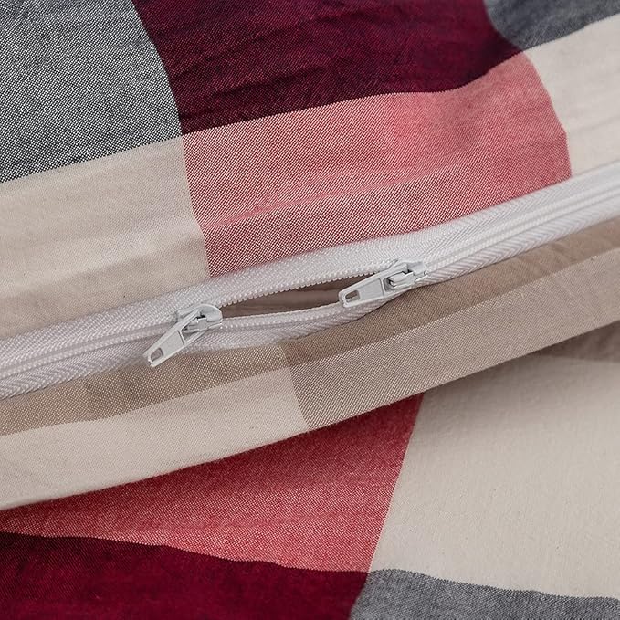 FACE TWO FACE Bedding Duvet Cover Set100% Washed Cotton Duvet Cover Linen Like Textured Breathable Durable Soft Comfy (California King, Blue red Grid)