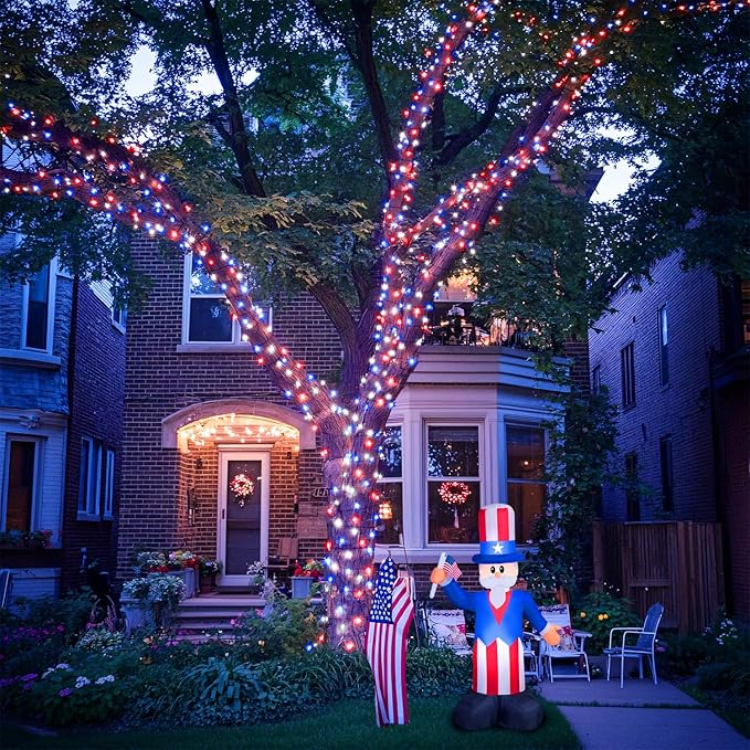 - 【Vibrant 4th of July Decor】Illuminate your Independence Day celebrations with our 132ft red white and blue lights, featuring 400 dazzling LEDs. Perfect for wrapping around porch, yard, trees, bushes, or fences, these patriotic Lights create a stunning display that captures the spirit of the 4th of July