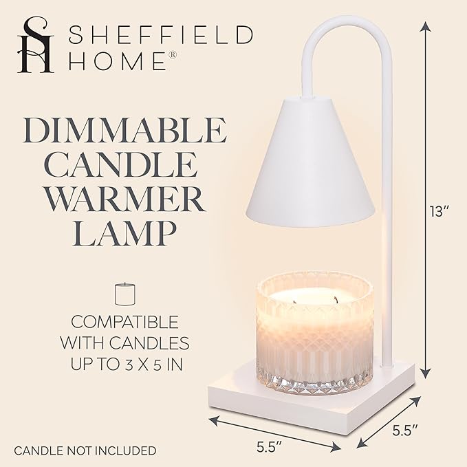 Sheffield Home Glass Candle Warmer Lamp – Elegant Candle Warmer for Long-Lasting Fragrance, Sleek Design, 13x5.5, White Iron Candle