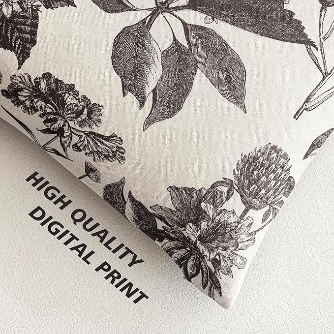 Foindtower Set of 2 Linen Floral Vintage Throw Pillow Covers Neutral Accent Print Decorative Cushion Covers Farmhouse Boho Home Decor for Sofa Chair Couch Bedroom Living Room Outdoor,18×18 Inch,Black