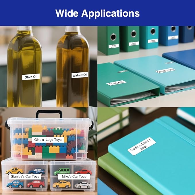 - Fast Keyboard & Smart App Printing: Print directly via the keyboard for quick frequent labeling, or use the Bluetooth App to create customized designs; ideal for home organization, garage tools, pantry items, office files, and school supplies